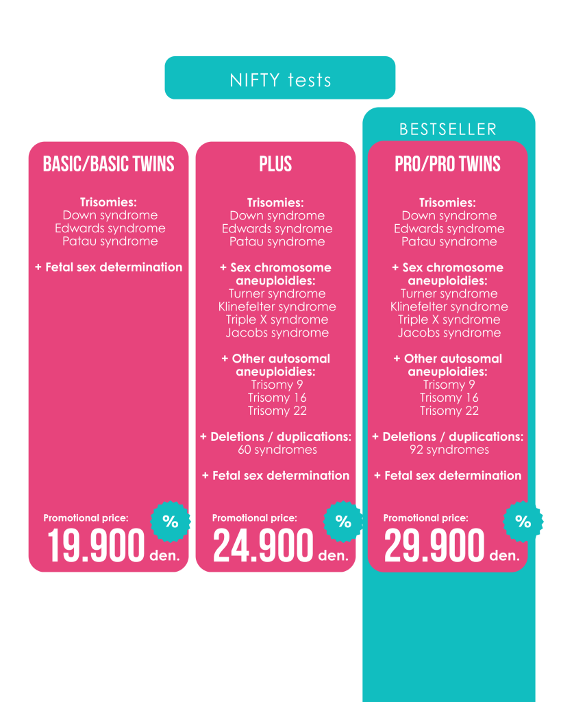 - The tests are also suitable for twin pregnancies, IVF pregnancies, pregnancies with donor eggs, as well as women with a history of recurrent miscarriages.